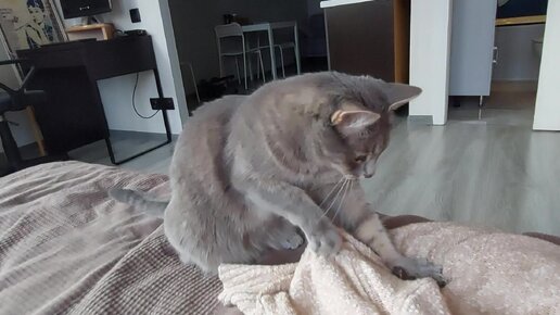 И тебя расслабит и меня)) Кошка жмякает кофту хозяйки