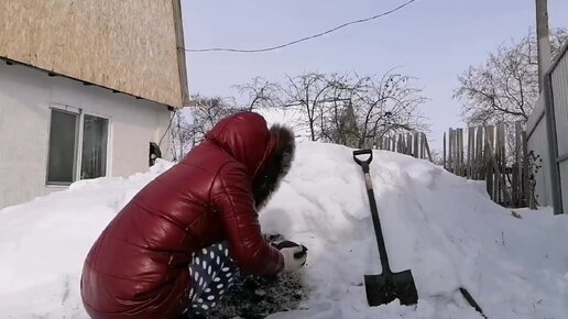 Добываю из под снега грунт для будущих посадок