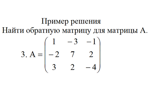 Нахождение матрицы обратной для матрицы A=(1 −3 −1; −2 7 2; 3 2 −4) пример 5 Высшая математика