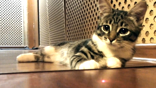 Котенок бегает по стене за лазером. Невозможно сдерживать смех. Котенок Ватсон.