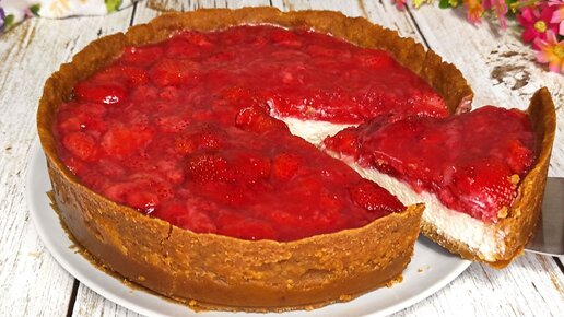 Творожный ЧИЗКЕЙК из ПЕЧЕНЬЯ с замороженной КЛУБНИКОЙ! В духовке!