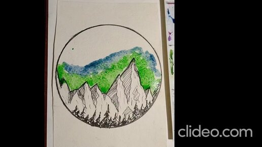 Горы пейзаж акварель