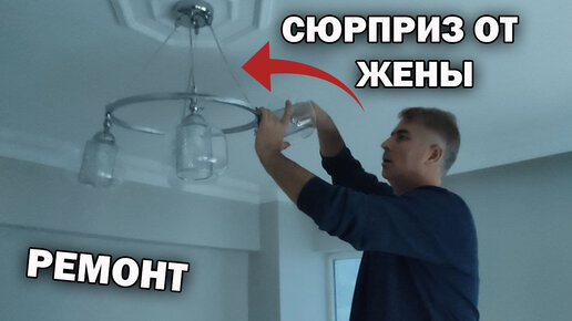 Вешаю рулонные шторы и подключаю сюрприз от жены - люстру. Ремонт в нашей квартире в Турции