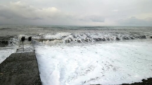 Начало февраля в Адлере было холодным и штормовым, посмотрим на набережную и пляж "Чайка"