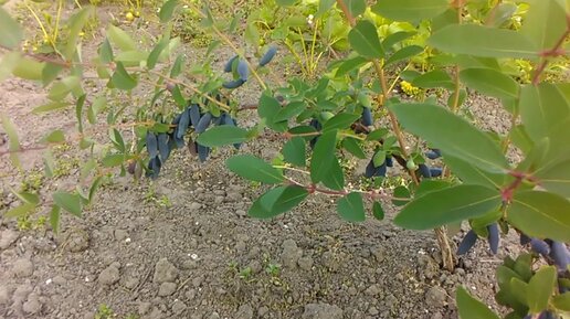 Первый сбор урожая крупноплодной жимолости у двух летних кустов