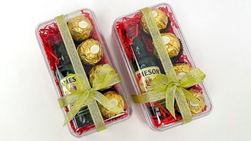 Быстро и Просто презент для мужчины. Подарок с мини бутылкой виски и конфетами
