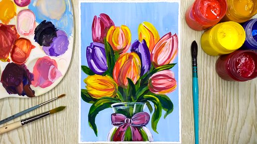 Как нарисовать тюльпаны гуашью. Рисунок на 8 марта. Рисуем гуашью для начинающих