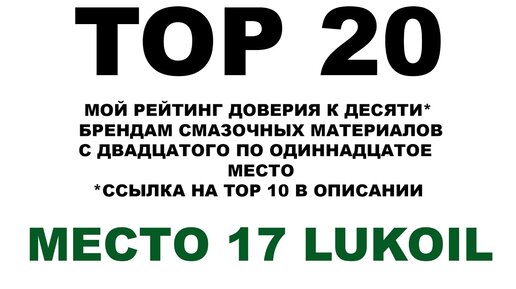 МЕСТО 17: LUKOIL. TOP 20 Моторных масел. Мой личный рейтинг доверия к производителям. #ANTON_MYGT