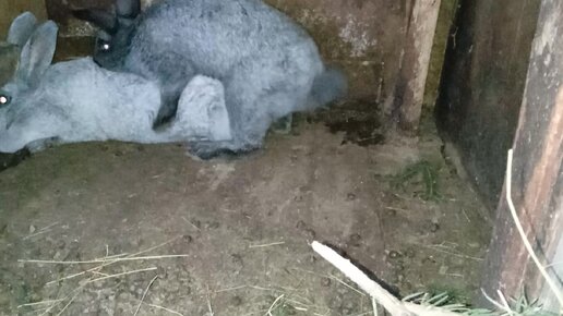 Серебристые кролики. Знакомство самки с новым самцом.
