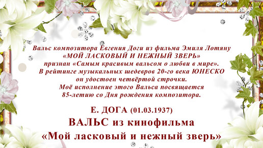 Е. Дога. ВАЛЬС из кинофильма "Мой ласковый и нежный зверь"