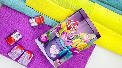 Как шикарно оформить ЧАЙ В ПОДАРОК своими руками. Поделки идеи из гофры и конфет на 8 марта diy
