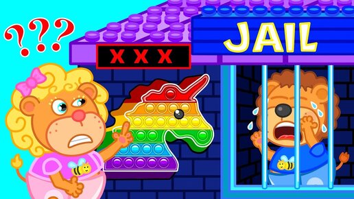 Leo Plays Pop It Challenge With Colorful Lego and Learn Colors | Lion Family | Cartoon for Kids