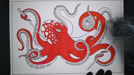Осьминог (рисунок маркерами)