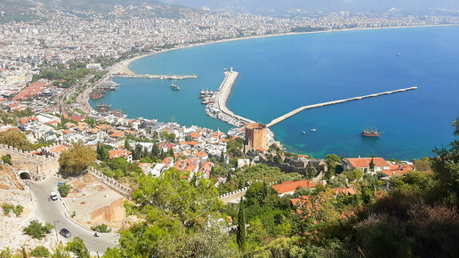 Вид на Красную Башню (Kızıl Kule) у подножия горы м Судоверфь (Tersane) с Аланийской крепости. Турция
