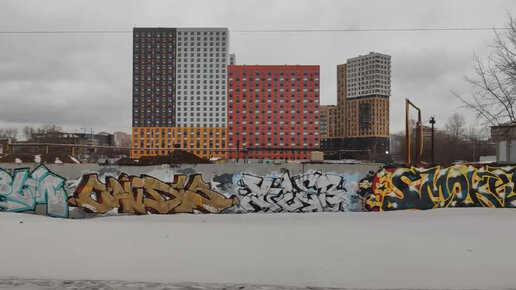 Виды зимней Москвы в окно электрички МЦД на перегоне к Новохохловской и Текстильщикам