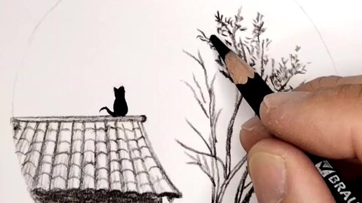 Ночной городской пейзаж. Рисую карандашом.