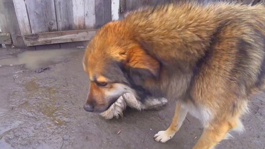 Симба спит среди луж. Бублик занял чужую будку. Питомцы деревенского двора.