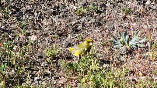 Зеленая птичка в зелёной траве. Не так просто заметить, но мы увидели