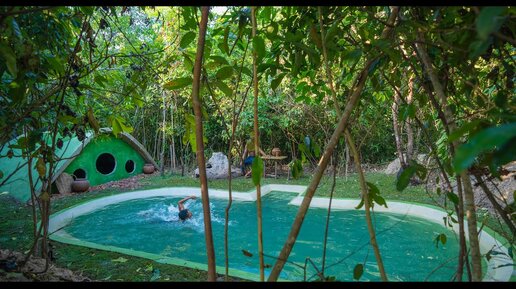 Build The Most Beautiful Jungle Survival Shelter with Swimming Pool by Ancient Skills