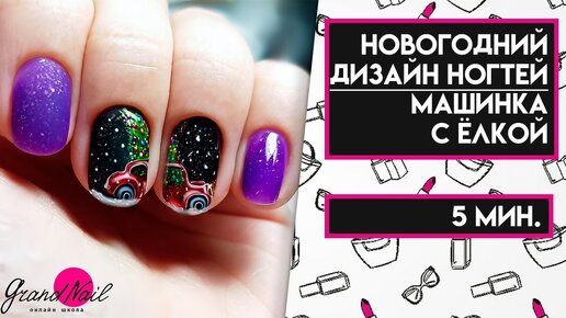 Новогодний дизайн ногтей Машинка с ёлкой МК Ирины Набок Grand NaiL