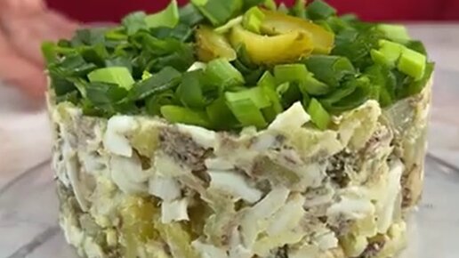 Салат из рыбных консервов с красивой подачей! Быстрый и простой салат!