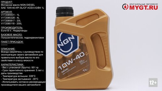 Моторное масло NGN DIESEL SAE 10W-40 API SL/CF ACEA A3/B4 1L V172085631 #ANTON_MYGT