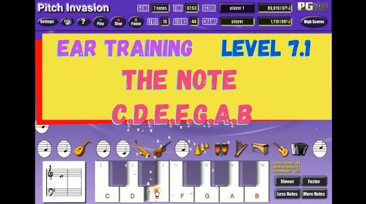 Music game. Level 7.1 Learning notes C,D,E,F,G,A,B