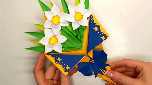 Открытка своими руками / подарок своими руками / нарциссы из бумаги / цветы из бумаги