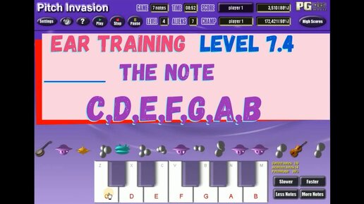 Music game. Level 7.4 Learning notes C,D,E,F,G,A,B