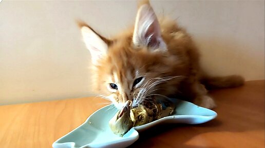 Двухмесячный мейн-кун ест целого цыпленка🤤