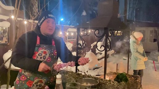 Что приготовить зимой на огне? Шашлык, гребешок.