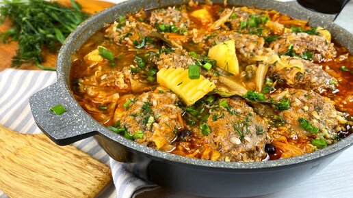 Беру фарш,картошку и капусту и закладываю в сковороду слоями: вроде бы продукты простые,а так вкусно (чем-то похоже на голубцы)