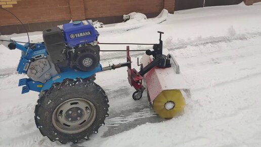 Испытания коммунальной щетки по снегу.