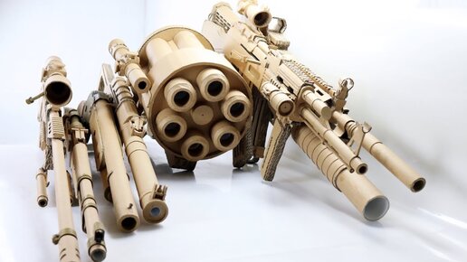 Стрельба из разных видов оружия из картона.