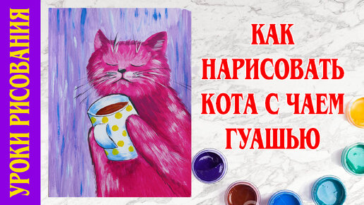 Кот. Урок рисования для детей. Рисование гуашью. 6+