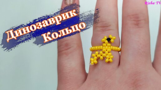 Как сделать кольцо из бисера Желтого Динозаврика // Простой Способ Плетения