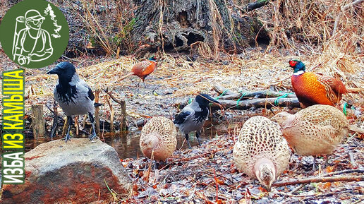Изба без меня 🦜 Видео для расслабления 🐦 Фотоловушка: фазаны, ворона, сойки, синицы