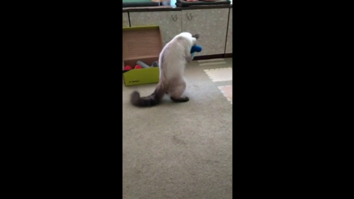 Кот играет с плюшевой змеёй