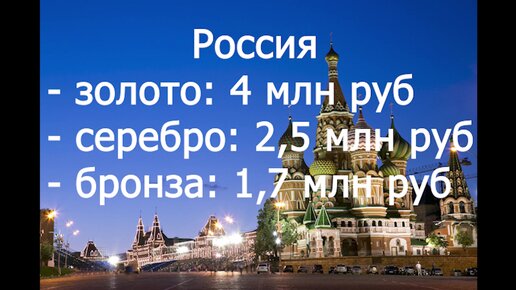 Сколько стоят олимпийские награды в разных странах? Посмотрим, и всё узнаем