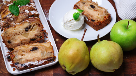 Яблочно-грушевый кекс с заварным кремом🍐Кекс с грушей, яблоками, курагой, корицей и заварным кремом🍏
