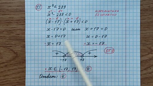 13) ОГЭ. Укажите решение неравенства х^2<289. Математика бесплатно. Математика. ОГЭ по математике. Решу огэ. Разбор огэ математи