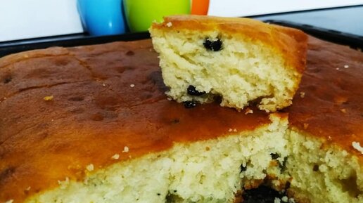 Самый простой пирог на кефире с изюмом.