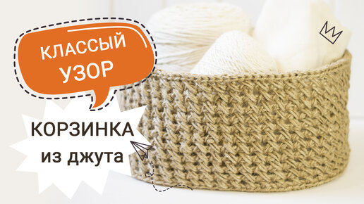 Корзина из джута крючком без использования каната. Вязание из джута / С деревянным дном