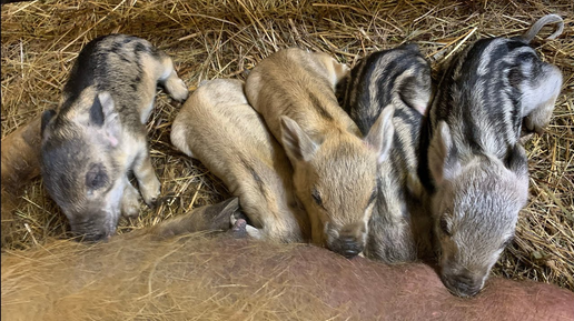 Опорос венгерской мангалицы. Две свиноматки за один день. Видеонаблюдение