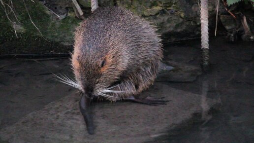 Нутрия умывается и плавает! Крупным планом