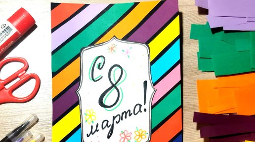 Открытка на 8 марта. Поделка из полосок цветной бумаги