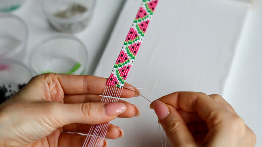 Как сделать фенечку из бисера с арбузом, браслет на станке