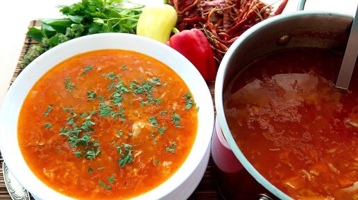 Домашний суп Харчо с курицей и рисом. Очень вкусный.