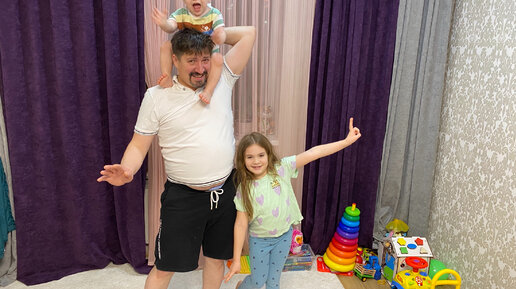 Отец делает зарядку вместе с ребёнком Как с пользой провести время