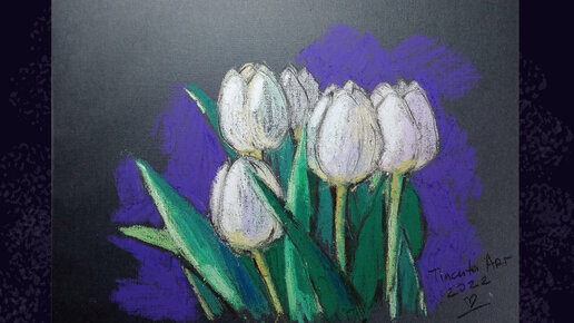 Рисуем белые тюльпаны с помощью пастели
